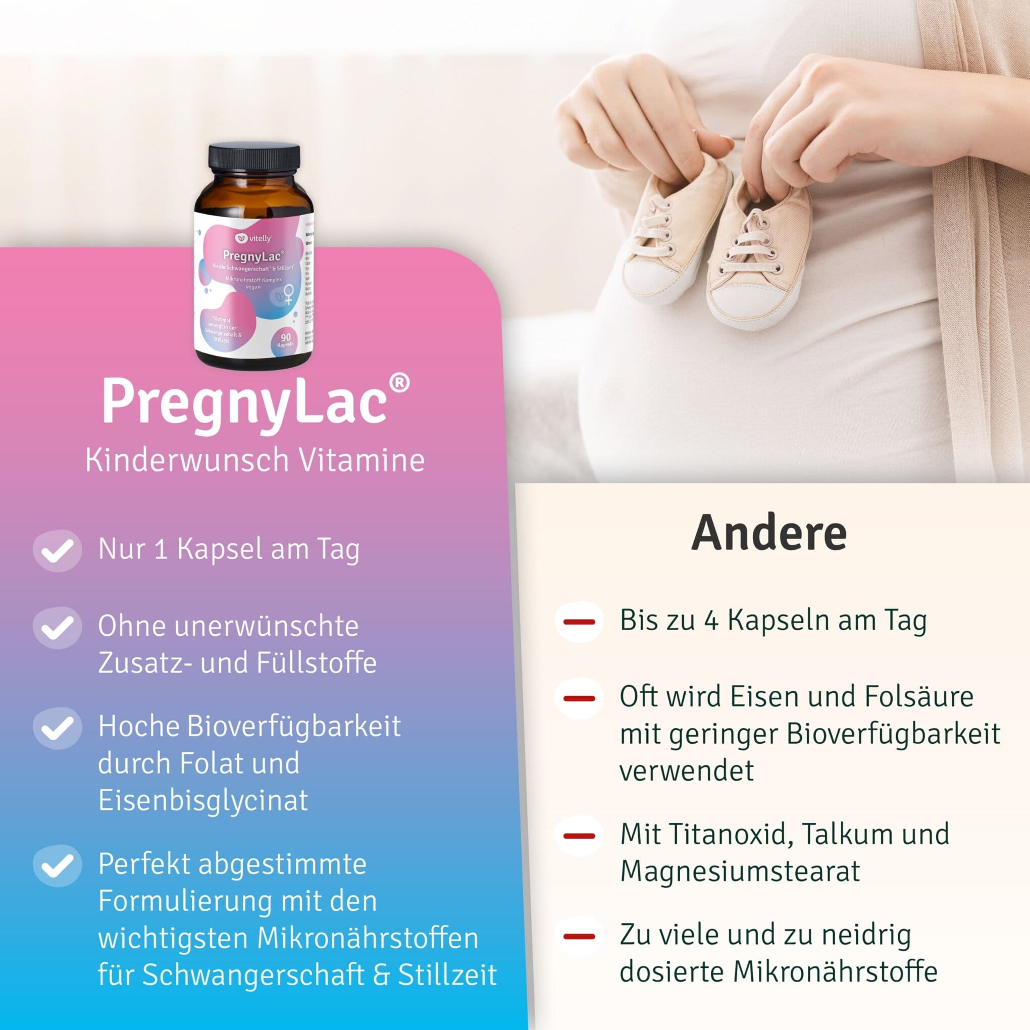 vitelly PregnyLac – mit Bedacht zusammengestellt, für Dich und Dein Baby.